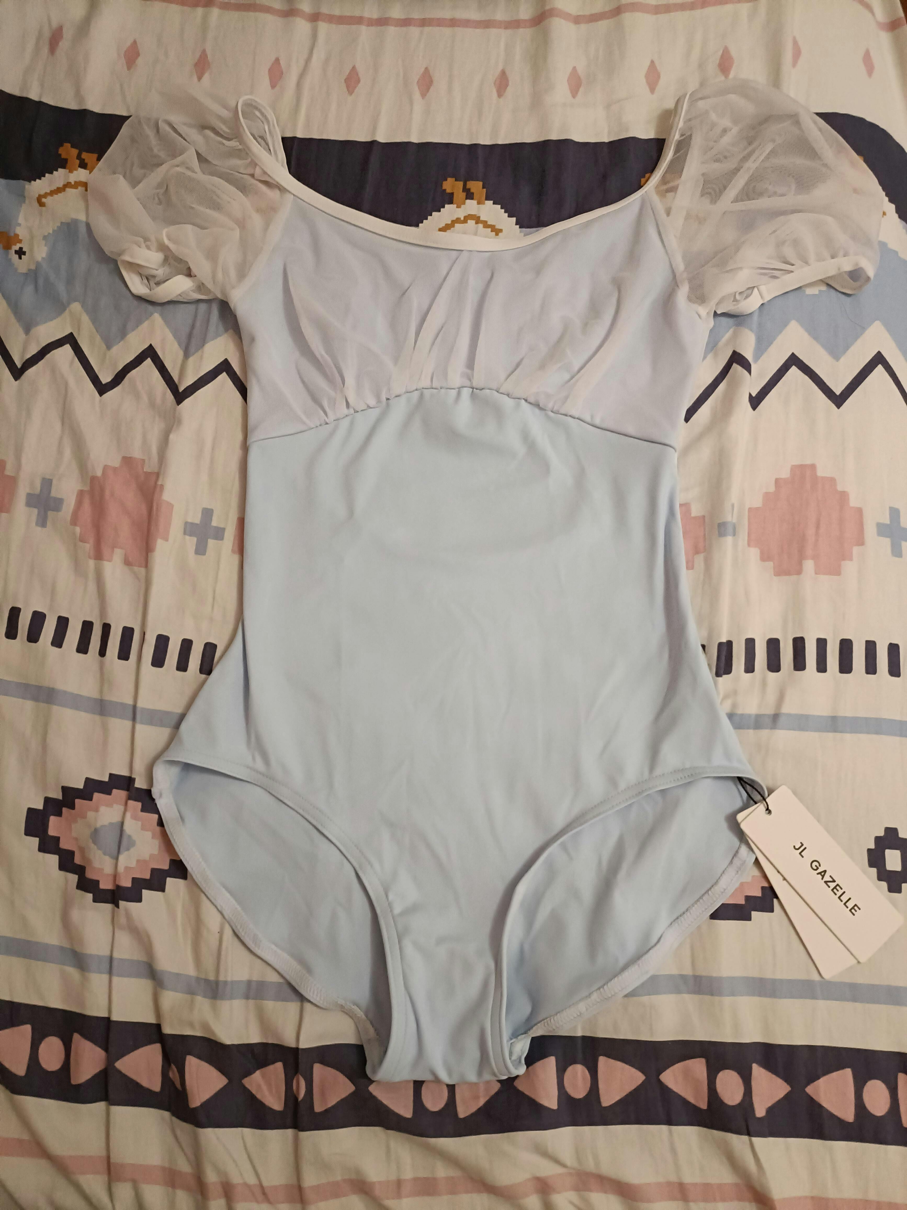 The Eileen Puff Sleeve Leotard features detailed gathering at the bust to accentuate the feminine figure and subtle balloon sleeves for a graceful touch at the shoulders.